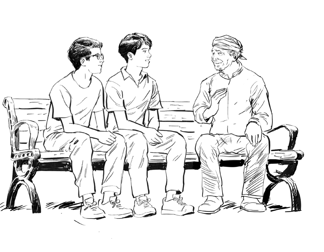 “Puji Gusti... pangesto... sae Abah mah,” tembal Abah Darsa bari uluk salam. “Kumaha yeuh Soni jeung Riki? Saprak hidep sakola di dayeuh, tara panggih jeung Abah.”