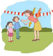 “Anu bade ngiringan, sok geura caralikna sing rapih... dinten ieu urang bade maen neguh kecap make gerakan,” ceuk Teh Nia. “Engke maenna sapasang- sapasang nya.”