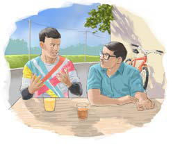 Hiji mangsa, maranehna sasapedahan ka luar kota. Di tengah jalan istirahat heula.